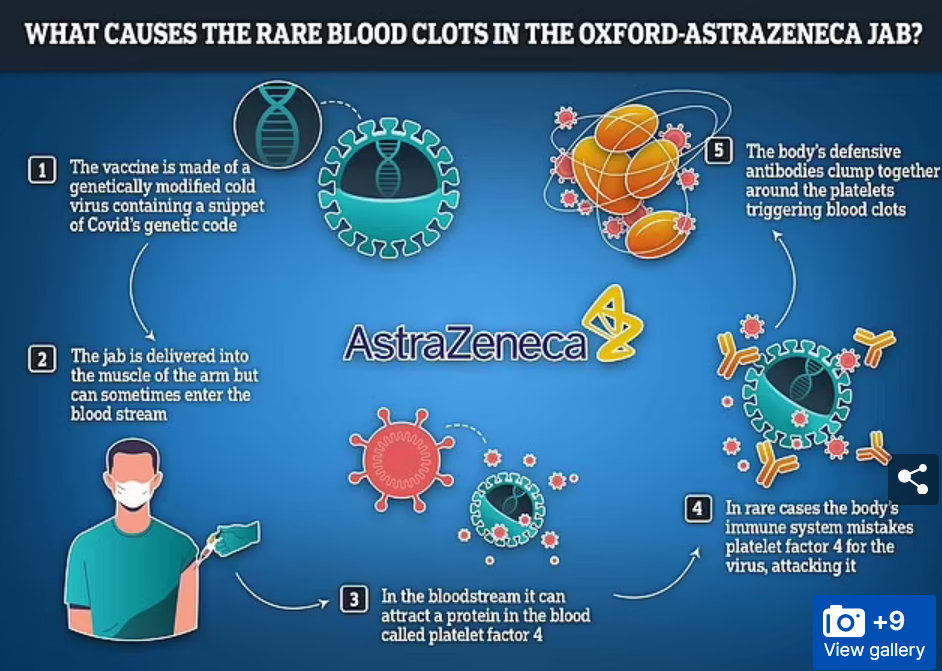 ‘From the body of evidence in clinical trials and real-world data, the AstraZeneca-Oxford vaccine has continuously been shown to have an acceptable safety profile and regulators around the world consistently state that the benefits of vaccination outweigh the risks of extremely rare potential side effects.’