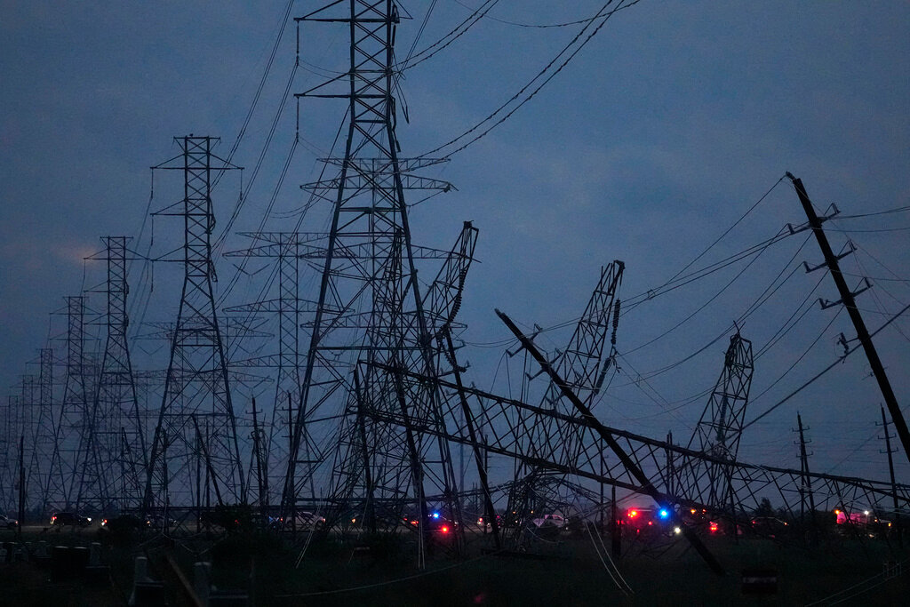 HOUSTON (AP) — Power outages could last weeks in parts of Houston, an official warned Friday, after thunderstorms with hurricane-force winds tore through the city, knocking out electricity to nearly 1 million homes and businesses in the region, blowing out windows on downtown high rises and flipping vehicles.