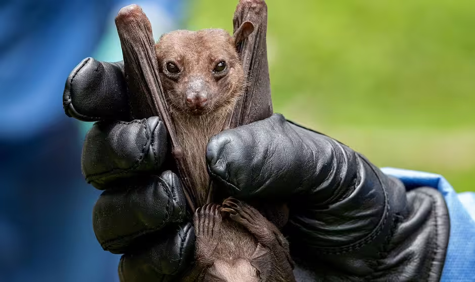 The Marburg virus spreads to humans from fruit bats via direct contact with bodily fluids like blood, saliva, and mucus.