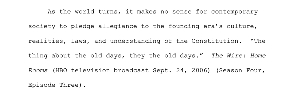But Hawaii’s court ignores all that. Hawaii’s rejection wasn’t backed by philosophical reasoning or a profound understanding of the law. Rather, it was rooted in a quote about the “old days” from the HBO television drama series “The Wire.”: “The thing about the old days, they the old days.” Literally, that’s in the opinion.