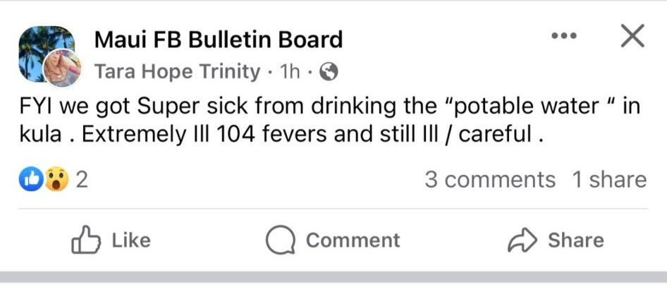 One Facebook user reported getting “super sick” from drinking the government-provided water. “Extremely ill, 104 fevers, and still ill/careful.”